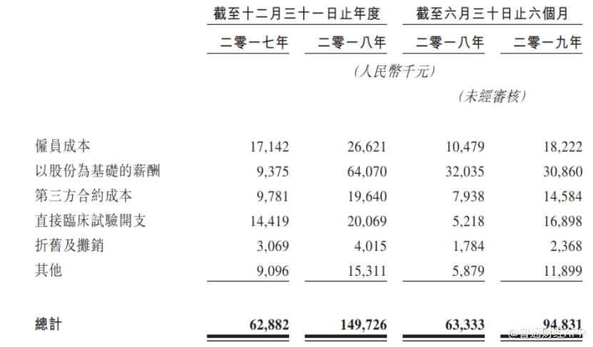 從最新的數(shù)據(jù)可以看到,2019年上半年,公司研發(fā)開支達到9483.1萬元,同比增長49.73%。其中雇員成本、第三方合約成本以及直接臨床開支的增加是造成公司整體研發(fā)成本增長的主要原因。