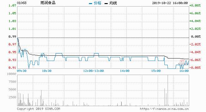 雨潤食品(01068) 0.940元 跌5.05%