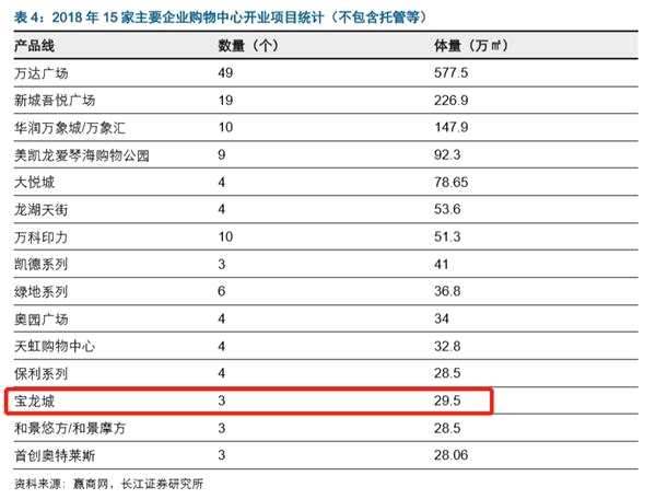 商業(yè)地產(chǎn)方面,2016年至2018年,寶龍地產(chǎn)的商業(yè)項(xiàng)目開(kāi)業(yè)數(shù)量分別為7座、5座、3座。而2018年,【新城控股(601155)、股吧】旗下的新城吾悅廣場(chǎng)新開(kāi)業(yè)19家,萬(wàn)達(dá)廣場(chǎng)新開(kāi)業(yè)49個(gè)。