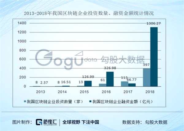 2013-2018年我國區(qū)塊鏈相關(guān)企業(yè)獲得投資數(shù)量以及融資規(guī)模均呈不斷上升趨勢,2018年區(qū)塊鏈相關(guān)企業(yè)獲得投資數(shù)量增長至397家,融資金額增長至1306.27億元。