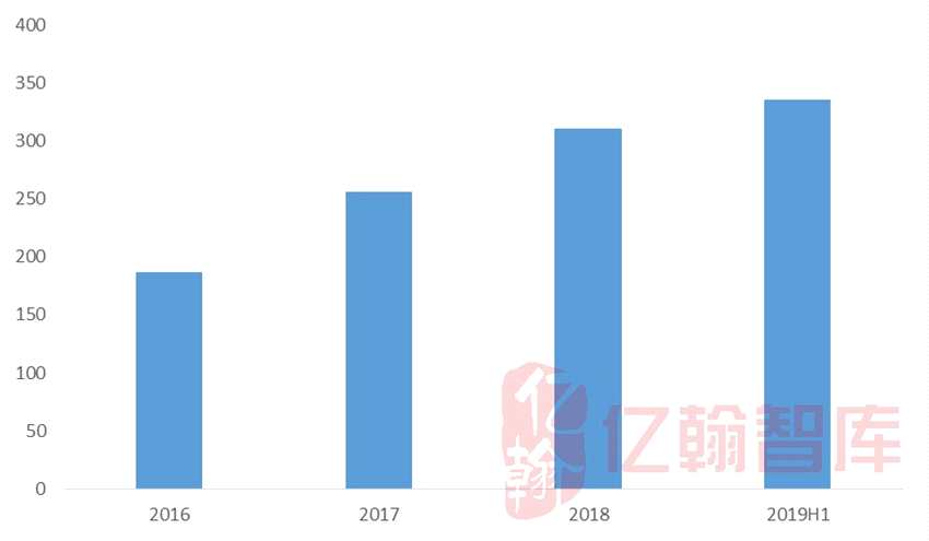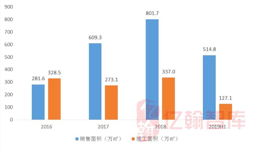 圖:2016-2019H1企業(yè)非住宅在管面積(萬㎡)