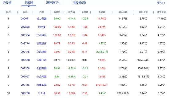 北向資金凈流入逾24億元 凈買(mǎi)入格力電器11.78億元