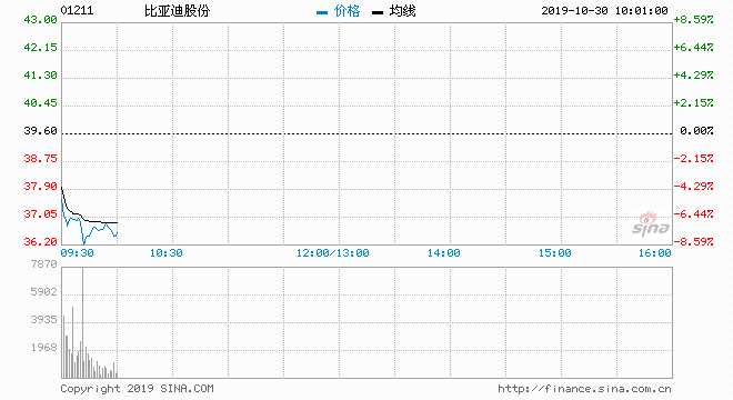 摘要: 比亞迪(002594,股吧)(01211)H股現(xiàn)價(jià)急挫6.57%,報(bào)37元,盤中低見36.6元,跌破20天線(約38.423元),暫表現(xiàn)最差國指股;成交約119萬股,涉資4468萬元。