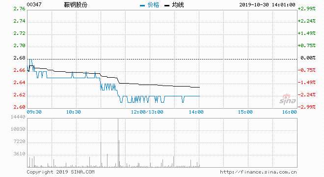 【鞍鋼股份(000898)、股吧】(00347)H股現(xiàn)跌2.24%,報(bào)2.62元,盤中低見2.61元,持平8月中旬的低位;成交約814萬股,涉資2147萬元。