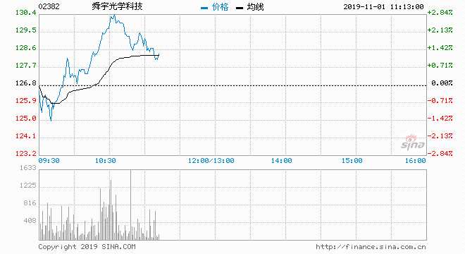 舜宇光學 (02382) 130.00元 升2.52%