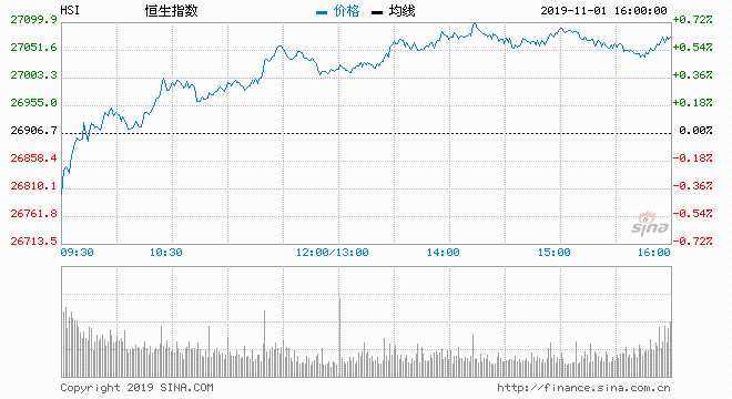 隔晚(31日)美股下挫,拖累恒指今早低開100點(diǎn)報(bào)26806點(diǎn),甫開曾跌106點(diǎn)見26800為全日最低位.隨后公布的內(nèi)地10月財(cái)新制造業(yè)PMI勝預(yù)期兼四連升,恒指倒升逾百點(diǎn),升破100天線(約27004).恒指最終收?qǐng)?bào)27100,升194點(diǎn)或升0.72%,坐穩(wěn)二萬(wàn)七,主板成交793.97億元.國(guó)企指數(shù)報(bào)10622,升89點(diǎn)或升0.85%。