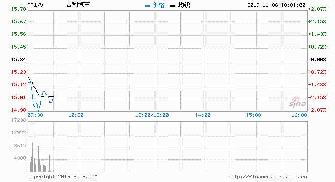 吉利汽車(00175)現(xiàn)價(jià)跌2.35%,報(bào)14.98元,盤中低見14.96元;成交約548萬股,涉資8283萬元。
