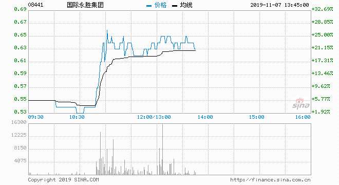 國際永勝集團(tuán)(08441)現(xiàn)價升25%,報0.65元,盤中高見0.66元;成交約1687萬股,涉資1055萬元,主動買盤69%。
