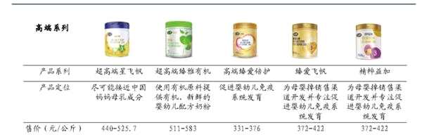 招股書(shū)顯示,飛鶴的嬰幼兒配方產(chǎn)品分為高端嬰幼兒配方產(chǎn)品與普通嬰幼兒配方產(chǎn)品。其中,高端嬰幼兒配方產(chǎn)品包括超高端星飛帆、高端臻稚有機(jī)及高端產(chǎn)品系列,普通嬰幼兒配方則針對(duì)較為注重價(jià)格的客戶(hù)群。