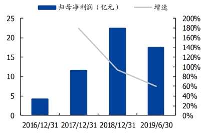 招股書(shū)顯示,2016-2018年,公司營(yíng)收由37.24億元人民幣增至103.92億元人民幣,年復(fù)合增速達(dá)67.05%;歸母凈利潤(rùn)由4.17億元人民幣增至22.42億元人民幣,年復(fù)合增速達(dá)131.87%。而2019年上半年,公司營(yíng)收和歸母凈利潤(rùn)的增速分別下滑至34.37%和60.41%。