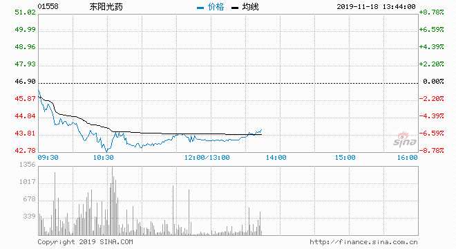 【東陽光(600673)、股吧】(600673,股吧)藥(01558)現(xiàn)價跌6.82%,報43.7元,盤中低見42.6元,穿廿天線(約46.227元);成交約398萬股,涉資1.75億元。