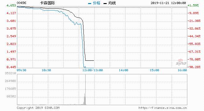 11月21日消息,卡森國際在香港暫停交易,停牌前暴跌90%。
