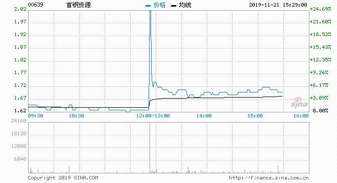 首鋼資源(00639)現(xiàn)價升6.17%,報1.72元;成交約660萬股,涉資1109萬元,主動買盤達67%。