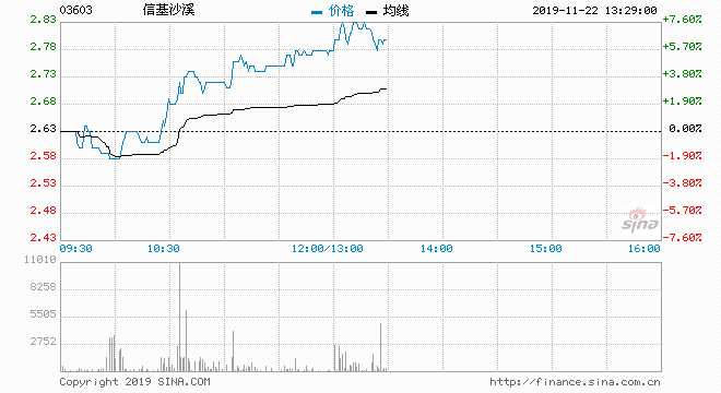 信基沙溪(03603)現(xiàn)價上升6.46%暫11連陽,報2.8元,盤中高見2.83元,創(chuàng)今年11月初上市以來新高,較招股價1元高1.83倍;成交約823萬股,涉資2209萬元,主動買盤84%。