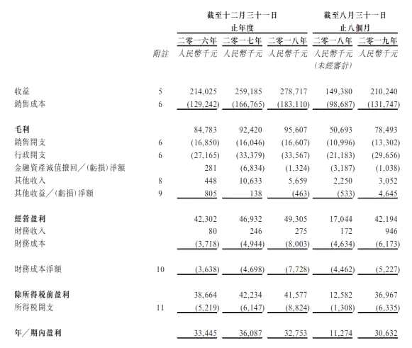 招股書顯示,在過去的2016年、2017年、2018年和2019年前八個月,奇士達的營業(yè)收入分別為 2.14 億、2.59 億、2.79 億和 2.10 億元人民幣,相應(yīng)的凈利潤分別為 3,344.5 萬、3,608.7 萬、3,275.3 萬和 3,063.2 萬人民幣。