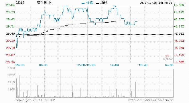 蒙牛乳業(yè)(02319) 29.75元 升 1.19%