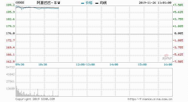 摘要: 11月26日消息,阿里巴巴正式登陸港股上市,阿里巴巴隔夜美股漲1.99%,最終報價190.44美元,折合港股為186.3146港元,相對于港股招股價漲5.86%。今日阿里巴巴掛牌在港股高開6.25%,