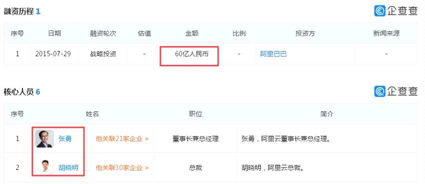 企查查顯示,阿里云成立于2008年,2015年7月獲得阿里60億人民幣的戰(zhàn)略投資。同時(shí),張勇兼任公司董事長(zhǎng)和總經(jīng)理,直接管控。