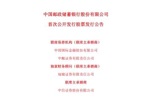 今天凌晨,中國郵政儲(chǔ)蓄銀行(下稱“郵儲(chǔ)銀行”)發(fā)布了《首次公開發(fā)行股票發(fā)行公告》。