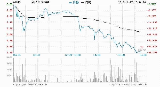 瑞誠(chéng)中國(guó)傳媒(01640) 1.75元 下跌39.45%