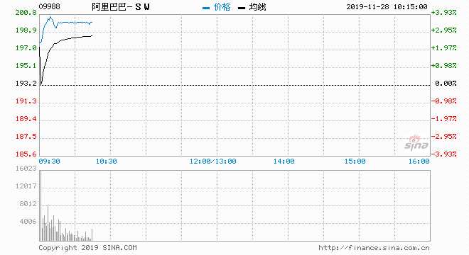 阿里巴巴現(xiàn)續(xù)升逾3% 突破200元大關(guān)