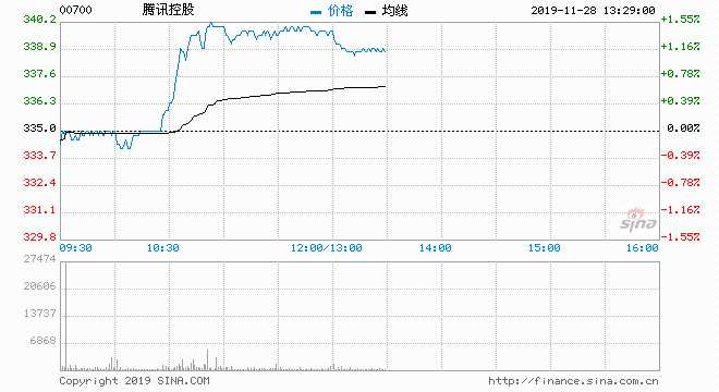 騰訊(00700)現(xiàn)價(jià)升1.19%,報(bào)339元,重上百天線(xiàn)(337.082元);成交約1138萬(wàn)股,涉資38.34億元。