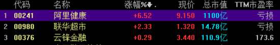 阿里概念板塊走高 阿里健康漲6.52%聯(lián)華超市漲2.33%