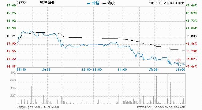 贛鋒鋰業(yè)(01772) 17.00元 跌6.80%