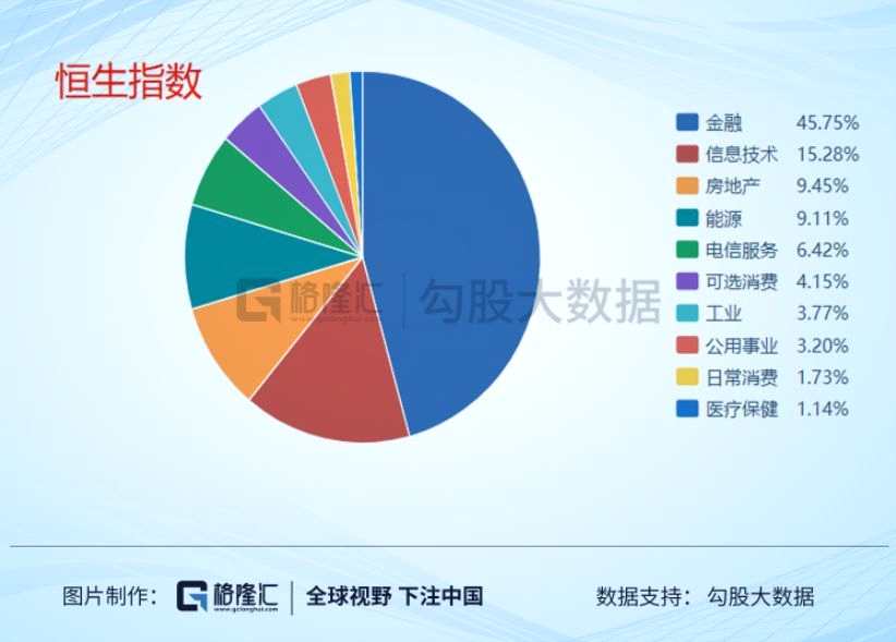 比如恒生指數(shù),金融占了45.75%,房地產(chǎn)占了9.45%,信息技術(shù)也占了不少,15.28%,不過,我想這里面最重要的因素是撿到了騰未來隨著阿里巴巴被納入,這塊的比重還有望提高。