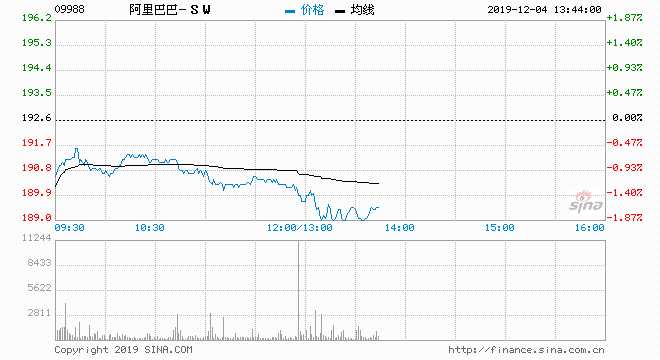 阿里巴巴 (09988) 189.00元 跌1.87%