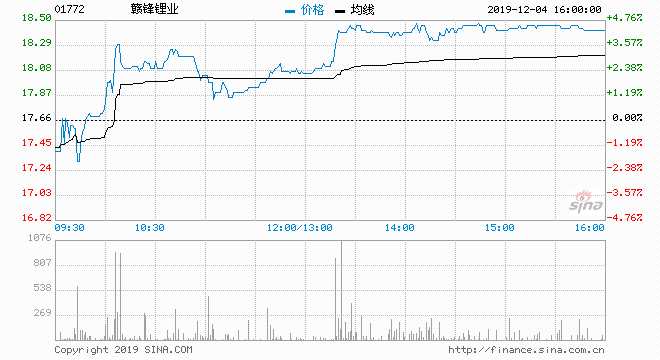 【贛鋒鋰業(yè)(002460)、股吧】(002460,股吧)(01772)H股現(xiàn)價(jià)上升4.53%,報(bào)18.46元;成交約164萬股,涉資2981萬元。
