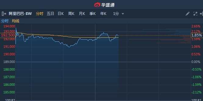 獲悉,阿里巴巴-SW(09988)獲高盛及富瑞唱好,利好消息刺激下,該股盤中一度漲超2%,截至13時(shí)43分,漲1.85%,報(bào)價(jià)192.5港元,成交額21.4億。