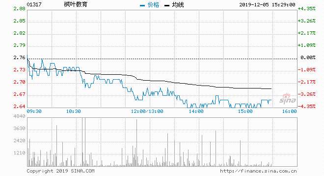 部分教育股捱沽,楓葉教育(01317)現(xiàn)跌4.35%,報2.64元;成交約1275萬股,涉資3426萬元,主動沽盤64%。
