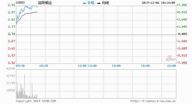 【洛陽(yáng)鉬業(yè)(603993)、股吧】(03993)H股現(xiàn)價(jià)上升7.72%,報(bào)2.93元,暫最高位創(chuàng)近7個(gè)月高;成交約2740萬(wàn)股,涉資7846萬(wàn)元,主動(dòng)買盤68%。
