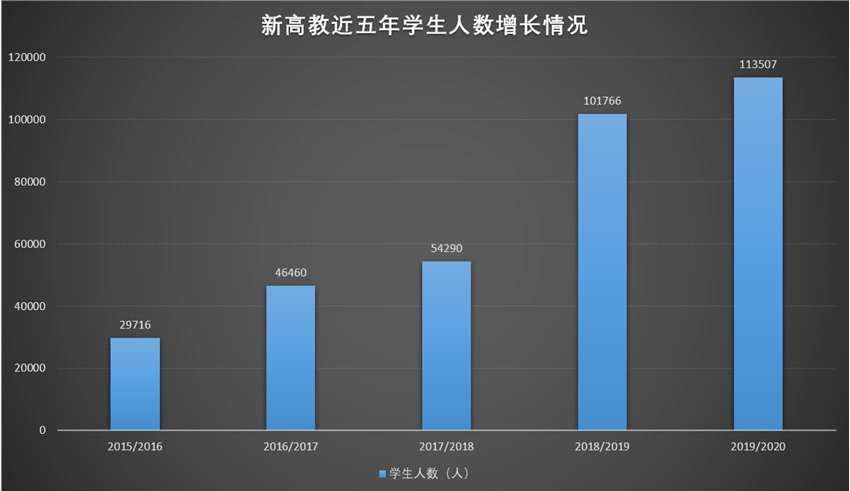 根據(jù)此前的公告,新高教集團(tuán)2019/2020學(xué)年總在校生人數(shù)增加至11.35萬(wàn),同比增長(zhǎng)21%;如果不計(jì)算新投資的甘肅學(xué)校,總在校生人數(shù)同比增長(zhǎng)13%至10.53萬(wàn)。