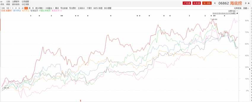 在A股市海天,茅臺(600519),恒瑞,在港股換成了海底撈,美團和中國生物制藥。連走勢基本都是相近的。