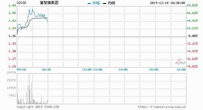 富智康急升約7% 今早有近2.5億元大手成交