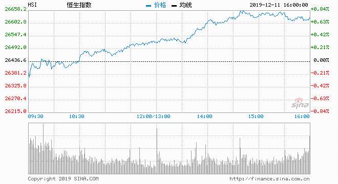 隔晚美股牛皮,港股今早輕微低開,港股早市于26500點現(xiàn)阻力,午后突現(xiàn)升幅,港股盤中一度突破10天、20天及100天平均線,并高見26659點,一洗大市沉悶氣氛.瑞聲(02018)獲大行唱好,股價急漲近6%領漲大市;港鐵(00066)亦承諾12底前重開大學站,股價跟升逾4%.最終大市收報26645點,升208點或升0.79%,主板成交743.38億元升兩成.國企指數(shù)報10502,升107點或升1.03%。