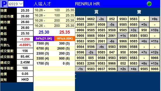 人瑞人才跌4.7%,報(bào)價(jià)25.35港元。人瑞人才發(fā)擬發(fā)行3800萬(wàn)股,其中香港公開發(fā)售314.14萬(wàn)股,國(guó)際發(fā)售3485.86萬(wàn)股,另有15%超額配股權(quán)。發(fā)售價(jià)厘定為每股發(fā)售股份26.6港元,每手交易100股。