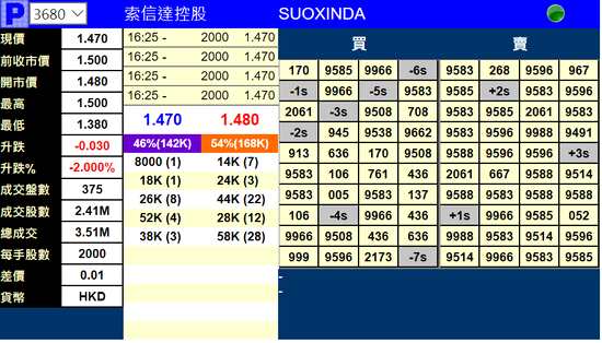 索信達(dá)控股跌2%,報(bào)價(jià)1.47港元。索信達(dá)控股擬發(fā)行1億股,公開發(fā)售股份數(shù)目3000萬(wàn)股,配售股份數(shù)目7000萬(wàn)股,發(fā)售價(jià)已定為每股發(fā)售股份1.50港元,每手2000股。