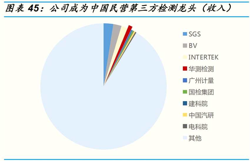競爭格局:而從競爭格局看,【華測檢測(300012)、股吧】現(xiàn)在的市場份額是國內(nèi)民營企業(yè)最高的,在全國除西藏之外的各省市均有檢測機(jī)構(gòu)布局,能夠搶占更多的市場份額。