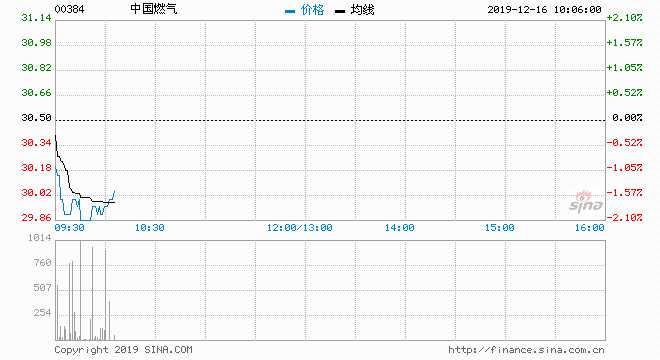 中國燃?xì)狻 。?0384) 29.900元 跌1.97%