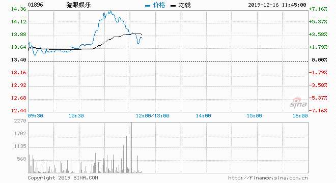 貓眼娛樂(lè) ?。?1896) 14.300元 升6.72%