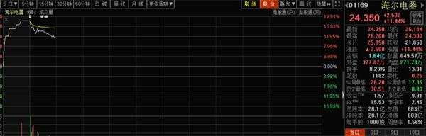 海爾電器此前因傳聞停牌,復(fù)牌之后,股價(jià)大漲一度大漲20%。