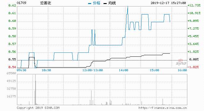 云裳衣(01709)現(xiàn)價(jià)上升7.27%,報(bào)0.59元,盤中高見0.63元,創(chuàng)一年半新高;成交約2812萬股,涉資1561萬元。