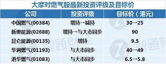 大摩列出對燃?xì)夤勺钚碌哪繕?biāo)價(jià)及投資評級,詳情如下: