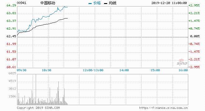 中國(guó)移動(dòng)(00941) 63.50元 升1.68%