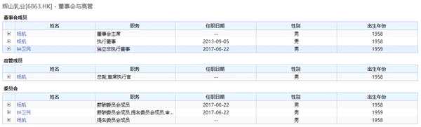 輝山乳業(yè)董事會與高管情況