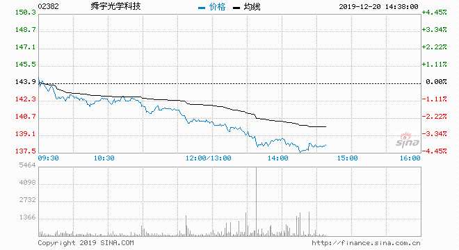 舜宇光學(xué)跌近4%跌穿十天線 失守140元關(guān)