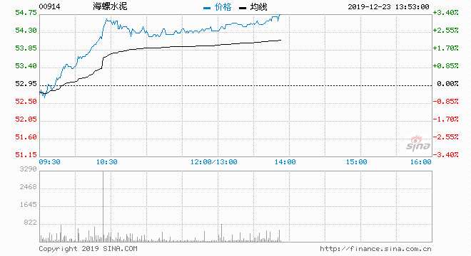 【海螺水泥(600585)、股吧】(600585,股吧)(00914)現(xiàn)價(jià)升2.83%,報(bào)54.45元;成交約255萬股,涉資1.38億元.盤中高見54.7元,創(chuàng)上市新高。